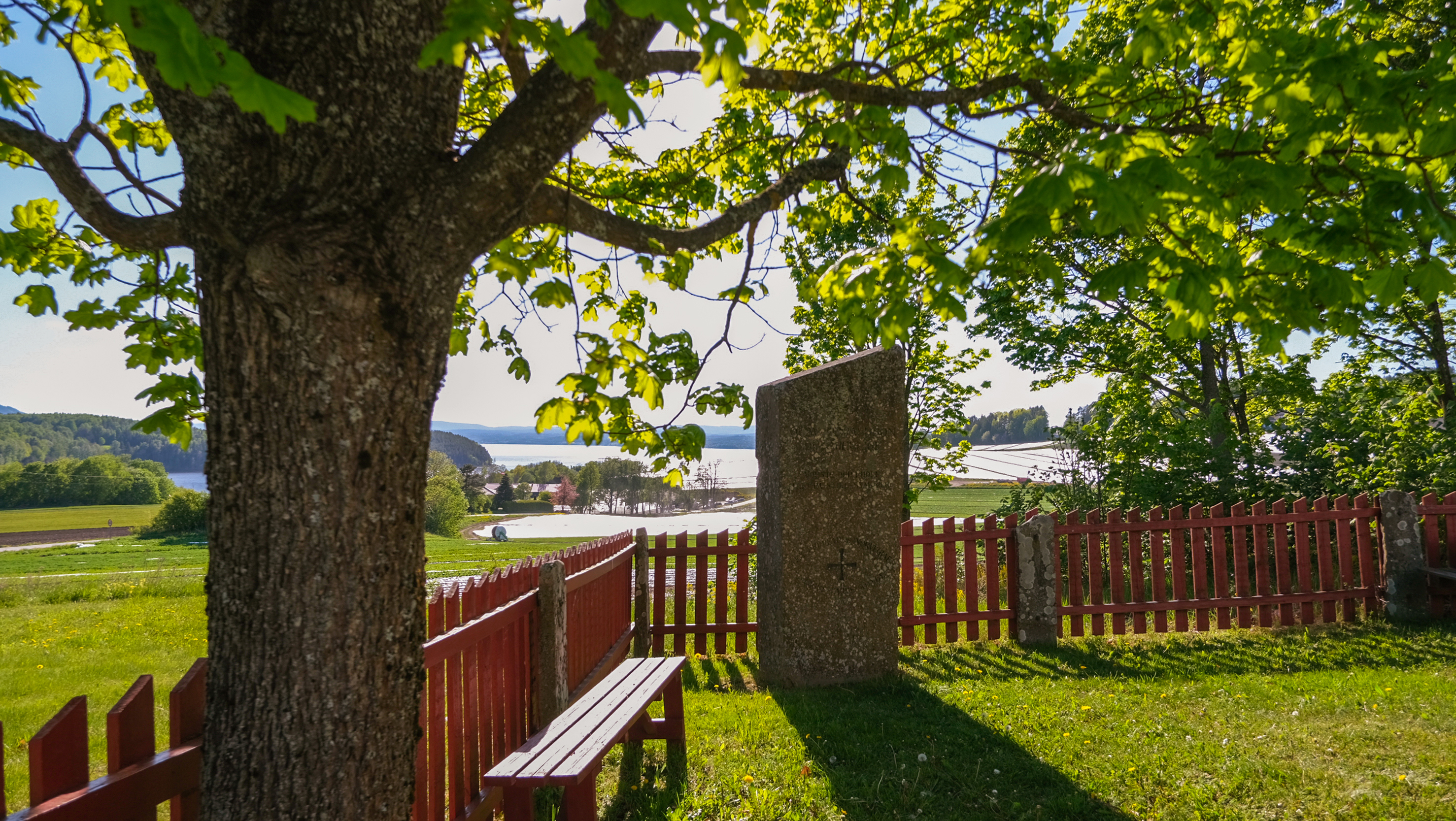 Mange trellar har nok krøkt nakken på jordene på Røyse. Ved Bønsnes kyrkje står det ein minnestein over han som har fått hovedæra for å kristne Norge. Innskrifta på steinen er: OLAV HARALDSON DEN HELLIGE VOKSTE OPP I HOLE FALT PÅ STIKLESTAD 1030 REX PERPEIUUS NORVEGIAE NORGES EVIGE KONGE. Foto: Anne Sofie Hval